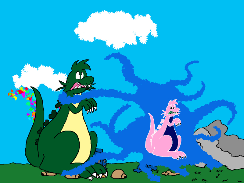 The long reach of the rift lunges for the great monster and wraps itself around its neck, absorbings its counter-essence into the rift as an inverted blasphamy of its original form (mainly because it looks like a giant pink dinosaur when inverted).