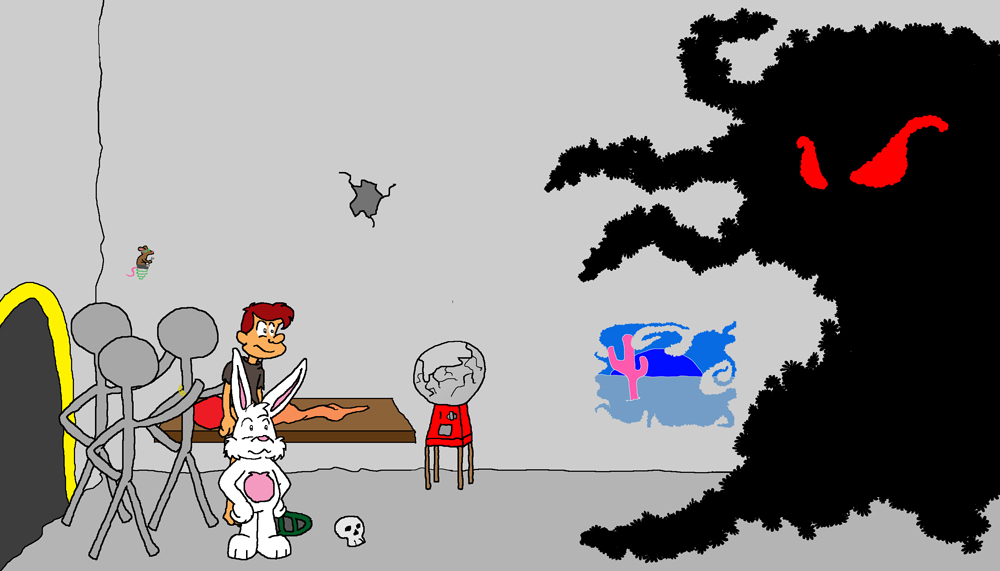 The rift's reach penetrates even the walls of its room, slowly creating a foothold in the rabbit's room. The creature of darkness summons its minions from the depths of the heinous rift.