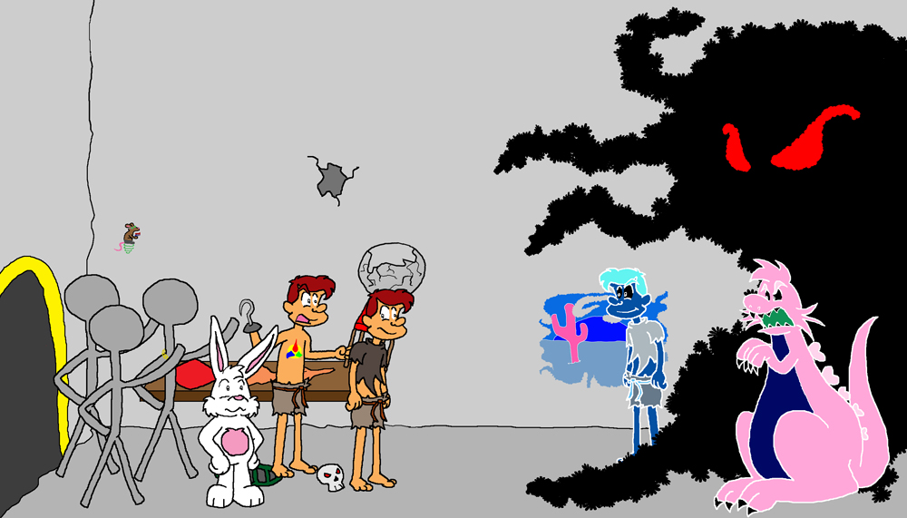 Calling out to the newly spawned version of yourself in the rift, you ask him to join you in battle against the evil trio of baddies. The Inverted Inverted Main Character stumbles out of the rift and waddles up to your party, with a little drool on the side of his mouth. You see that copying copies of yourself isn't probably the best thing to do.