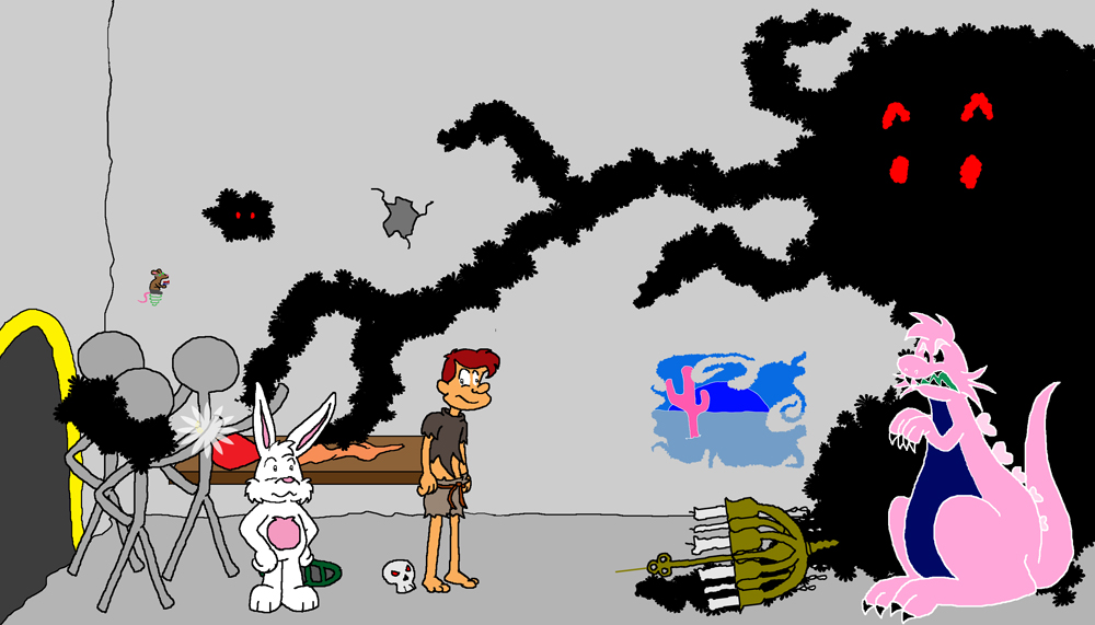 This is "Adventure!", where you, the reader, create the story! By putting an action for the characters to take in the above text box and pressing "Do it!", you take an active role in where the adventure leads. After some indeterminant amount of time, I will look over the actions you sent in and pick some to create the next panels for the adventure. Make sure to investigate your surroundings and analyze nearby objects; you never know if one might help you on your journey! You can even try to use objects or talk with characters in interesting ways to reach your goals, and don't be scared to try something original! You are encouraged to send in serious, funny, smart, stupid, simple, or complex actions, because the "best" ones I receive will be chosen to be drawn ("best" meaning whichever ones I find funny, interesting, helpful for driving the story in some way, are simplyneeded for readers to learn more about their environment, etc.). Heck, if you have a few good ideas, submit all of them!