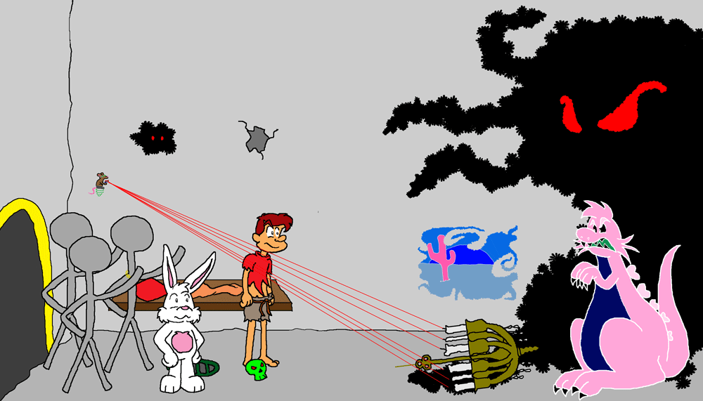 Turning the lazor splitzor on the device, Gilbert Mk. II fires his Lazor Phazor at the chandelier with six simultaneous blasts. The wicks of the candles warm and ignite, now burning brightly against the darkness. The darkness cringes and takes a small amount of damage.