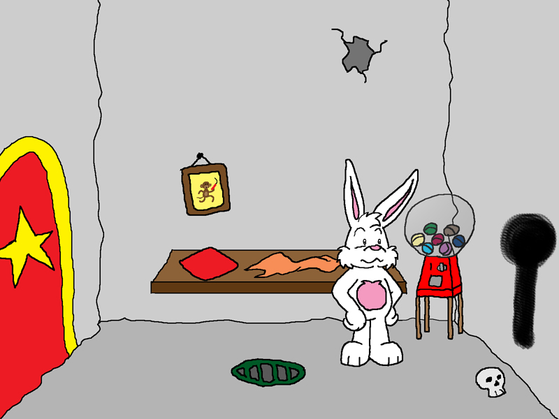The rabbit is not able to get any of the plastic bubbles from the machine without any coins, seeing as it is "coin-operated."