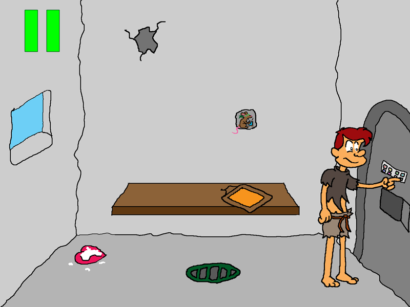 Since there's a black paw print in the other room, try pushing the black paws print button.