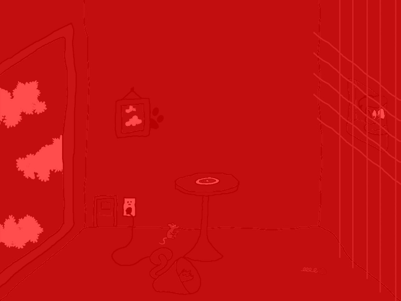 He notices that the paw on the wall stays black except when the color scanner is set to magenta.