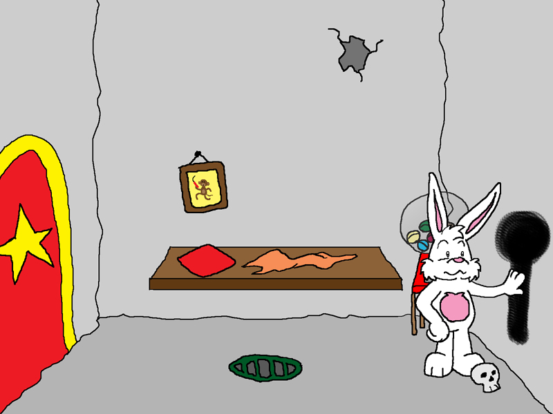 Feeling the wall, the rabbit notices that the keyhole is solid and flat on the wall.