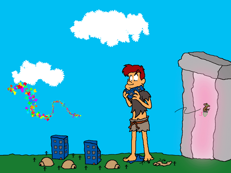 The tiny town folk are freaked out and run around for their lives. Gilbert Mk. II has seen enough, and flutters through the portal back into familiar environs.
